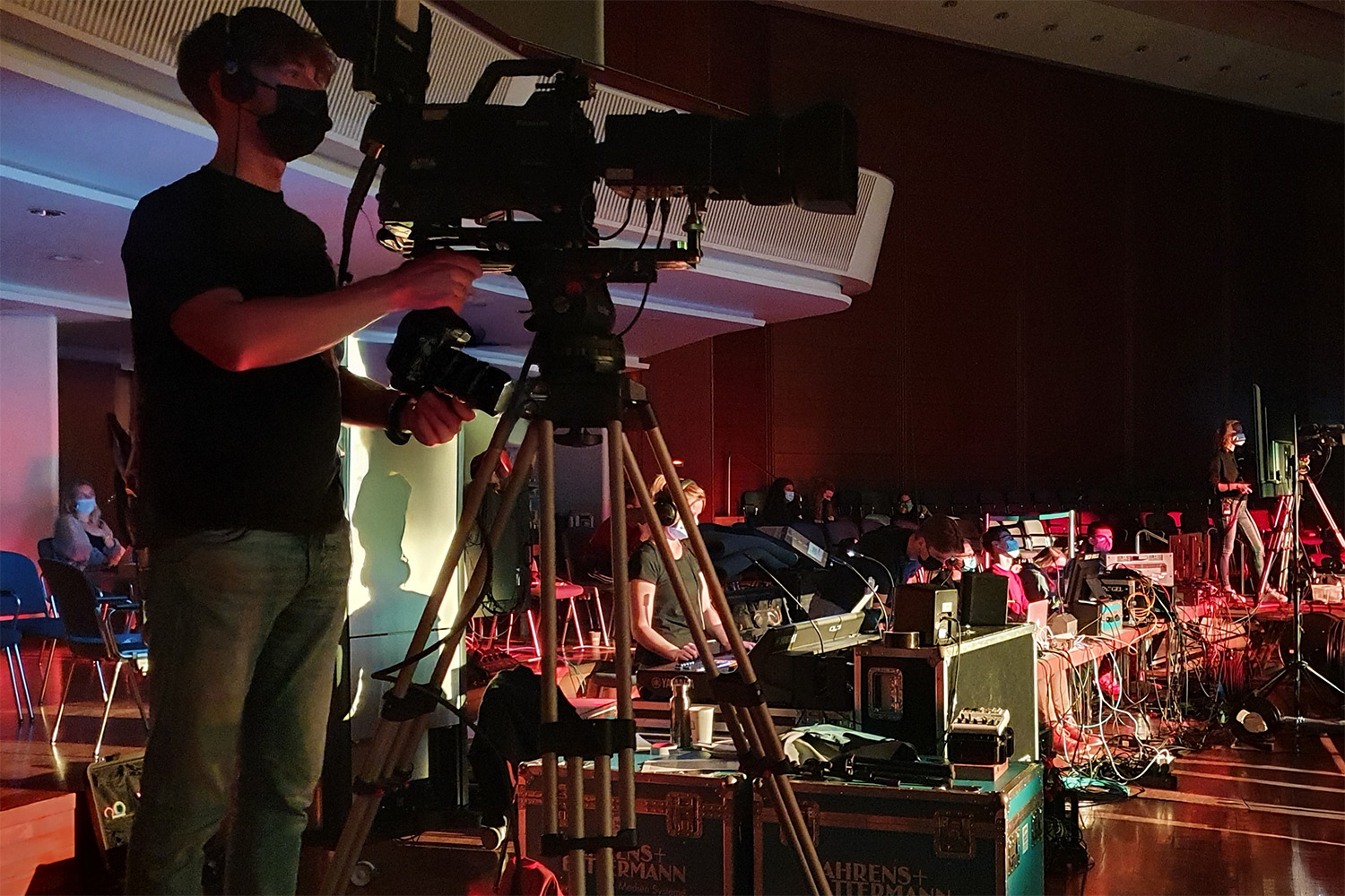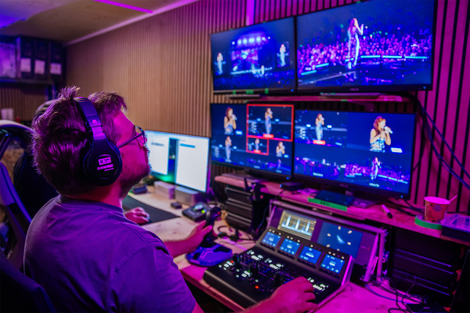 - 4 statische und eine remote steuerbare Cine Kamera auf der Bühne